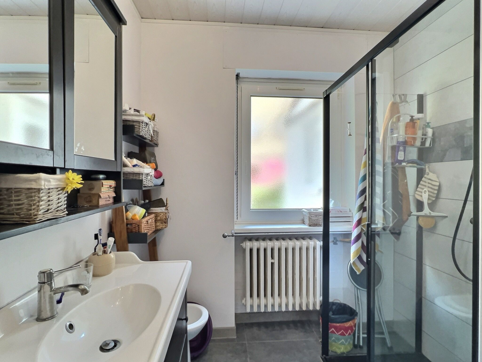 Au rez-de-chaussée, une chambre et une salle d’eau rénovée avec WC complètent le bien.